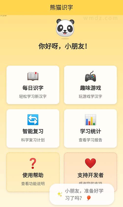 熊猫识字 分类:教育类 大小:26.7MB 热度:282 点评:0 发布: 2025-12-04 语言:简体中文 ①下载 ②下载 APP截图 应用介绍 名称:熊猫识字简介:每日识字、智能复习、学习统计、趣味游戏;按年级学习、按主题学习备注:手机版下载试用:① 熊猫识字_1.0.0.apk下载提取码见页面底部↓ 相关应用 央视少儿 亲宝故事会TV 亲宝儿歌TV 儿童智教 童话故事屋 快对AI 教育全套 风云学习宝 故事多多 口袋故事TV