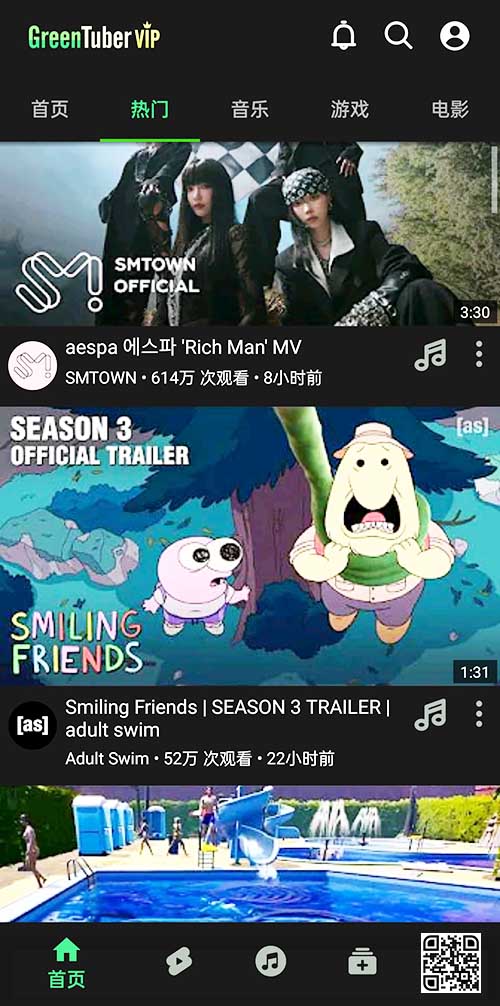 GreenTuber 分类:全球类 大小:15MB 热度:625 点评:0 发布: 2025-09-05 语言:简体中文 ①下载 ②下载 APP截图 应用介绍 名称:GreenTuber简介:GreenTuber是一个提供了许多实用功能的第三方YouTube客户端,尤其适合那些想要无广告观看YouTube视频的用户。备注:需要全球网络下载试用:①GreenTuber_0.1.7.5.apk下载提取码见页面底部↓ 相关应用 CVTV+ Google Play Store WeTV myTV-SUPER LiveTV HouseTV X64 BrowseHere浏览器 GreenTuber Zero TV 全球TV